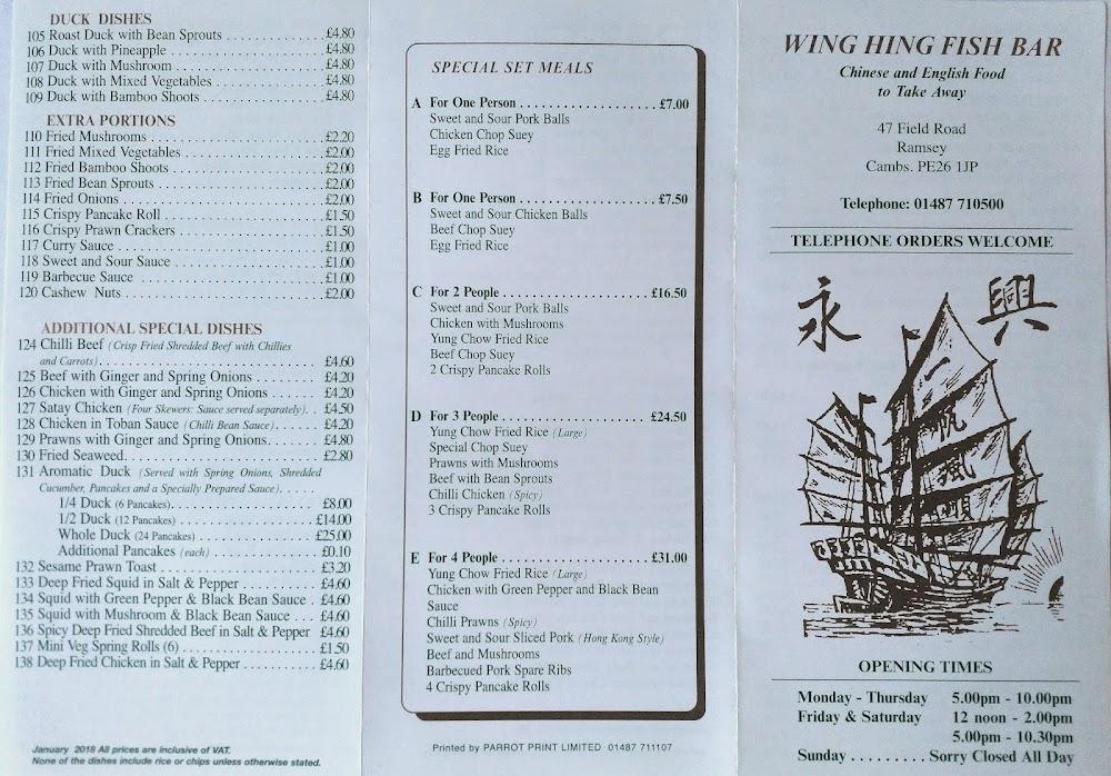 Wing Hing Fish Bar occupies a cozy spot in Ramsey, a charming town in Huntingdon. Nestled in a friendly neighborhood, it's a place where you can easily pop in for a takeaway after a long day or enjoy a seated dinner with family and friends. The restaurant’s welcoming vibe and accessibility options, including wheelchair-accessible seating and a car park, make it an excellent choice for everyone.